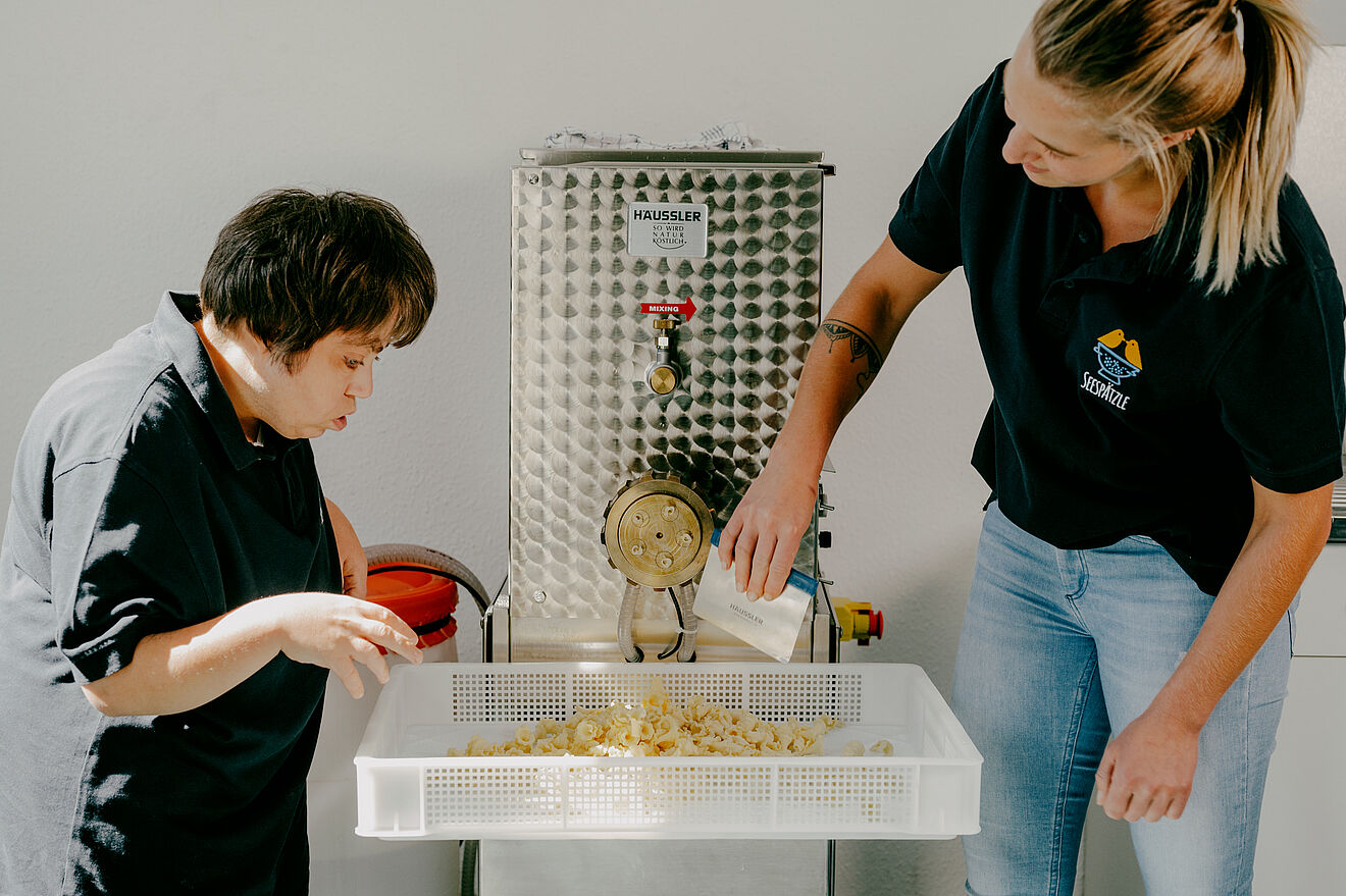 Seespätzle und Herztrumpf-Karten sind unsere Eigenprodukte aus dem Förder- und Betreuungsbereich. Hier zeigt sich, wie wertvoll unsere Arbeit tatsächlich ist. Unsere Herztrumpf-Karten wurden sogar mit dem Nachhaltigkeitspreis ausgezeichnet. Unsere Seespätzle sind das – zumindest kulinarisch – selbstverständlich auch.